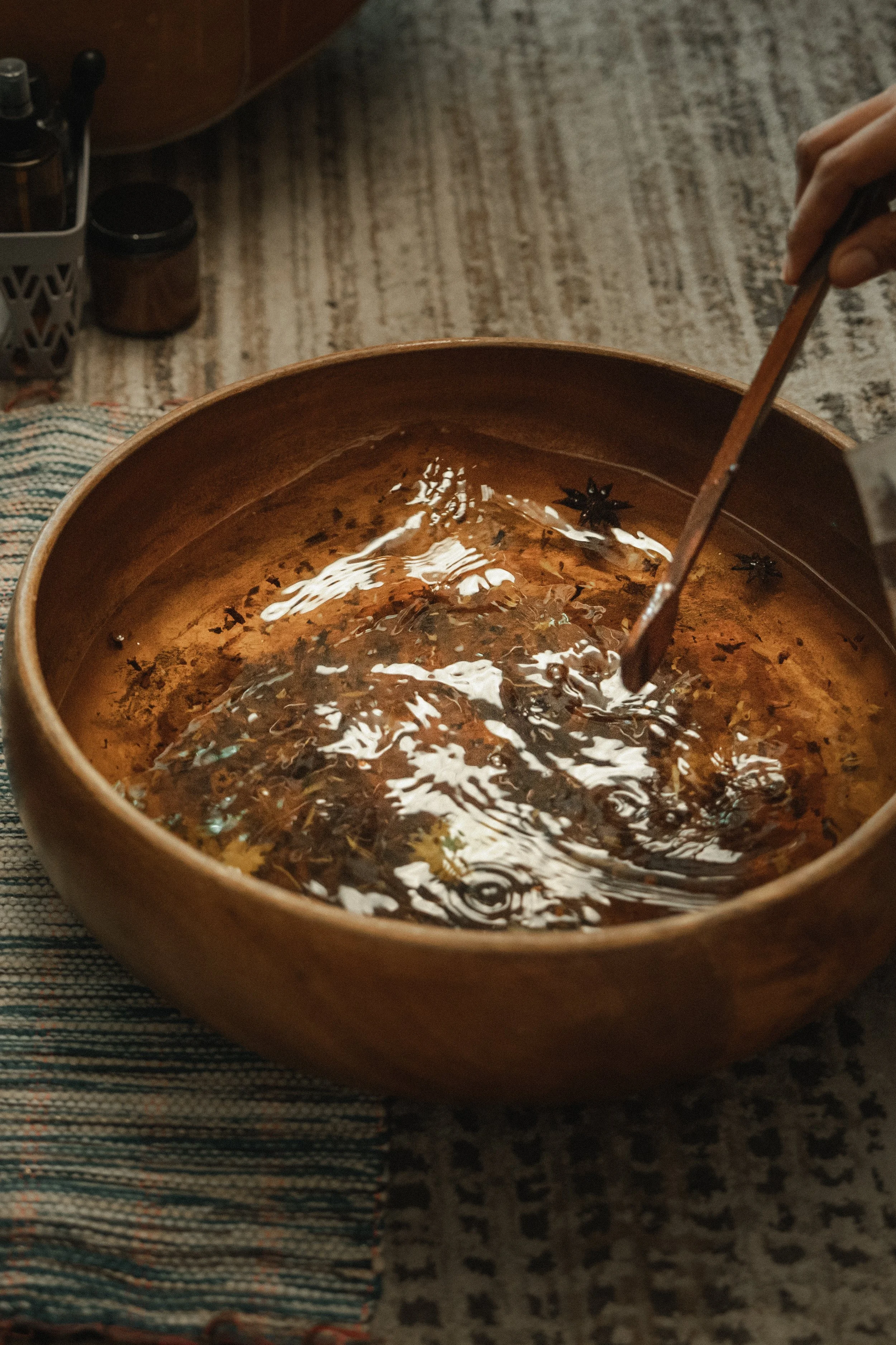 Each experience includes a herbal foot wash with detox oil rub, a herbal eye pillow, palo santo cleanse, and bolsters. 528Hz ambient frequencies resonate throughout the space, while Ayurvedic oils handcrafted by our herbalist nourish the skin and spirit. The ritual concludes with a cup of restorative herbal tea, returning the body to calm equilibrium.