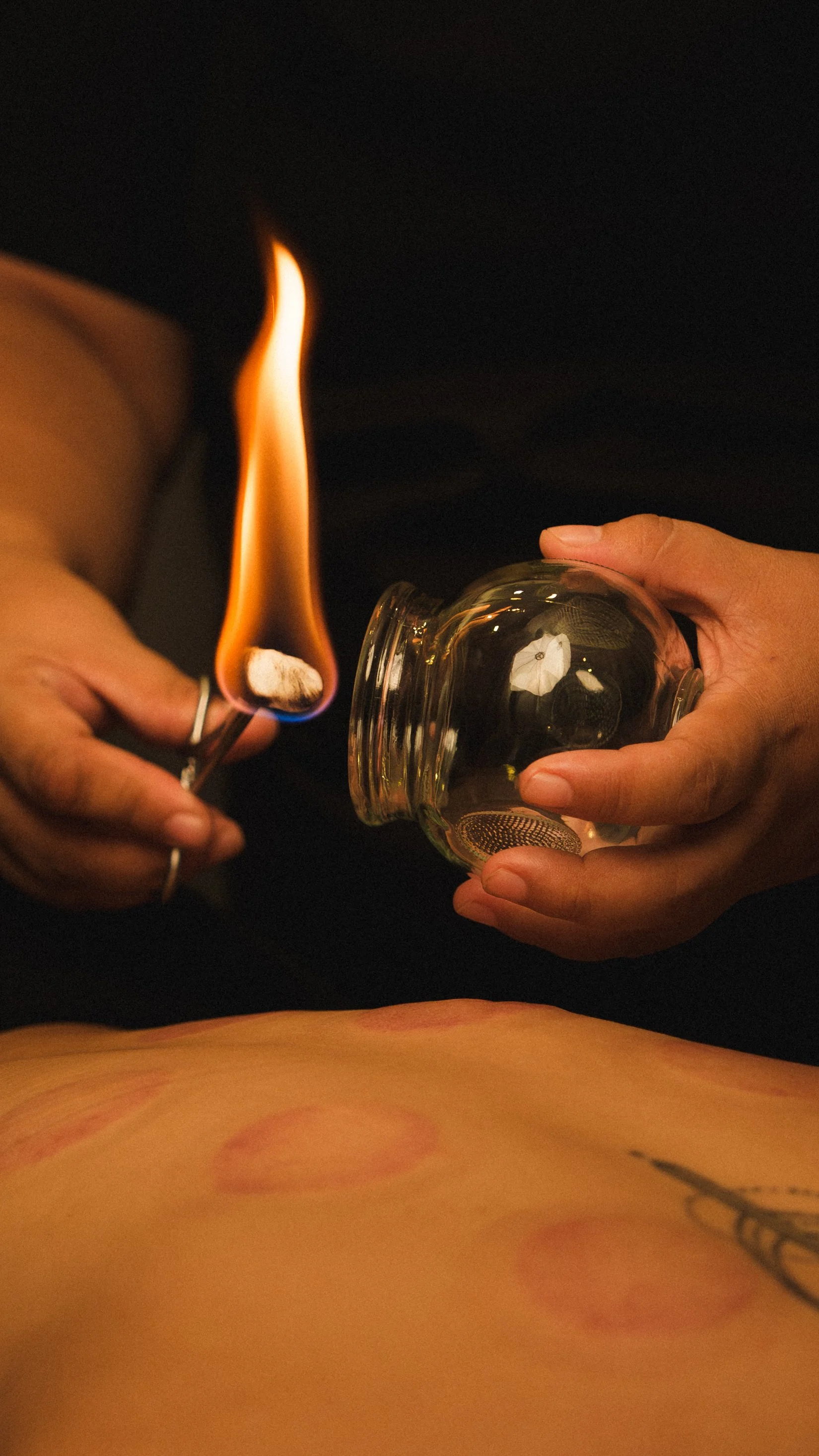 An ancient ritual to release stagnation and awaken circulation. Heated glass cups are placed along the body’s meridians, creating gentle suction that draws out deep-seated tension and encourages detoxification.